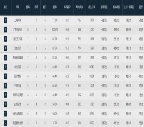 未尝败绩的广东队8胜0负紧随上海队后面,卫冕冠军广厦队7胜1负联盟第三,北京队战绩同样为7胜1负位列第四,本赛季的CBA果然是四强鼎立,每队都有足够的阵容深度冲击总冠军。