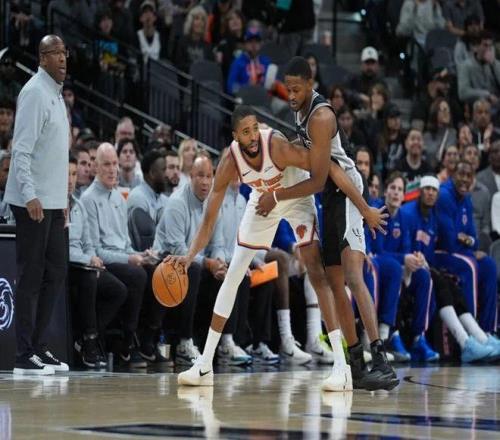 ——文班和科内特高位挡拆冲筐时会被反击渗透,尼克斯今天占便宜了。