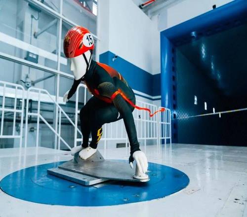 ▲风洞测试中的短道速滑国家队比赛服