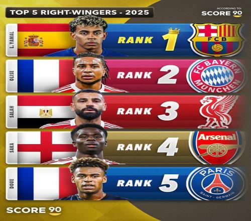 Score90评选的2025年五大右边锋