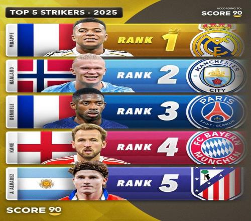 北京时间12月31日,Score90公布了根据他们的数据统计选出的2025年五大前锋,其中左边锋第一是拉菲尼亚, 右边锋第一是亚马尔,中锋第一是姆巴佩。